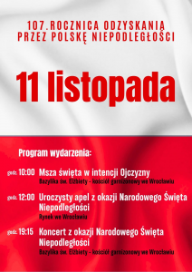 2. We wtorek 11 listopada będziemy obchodzić 107. Rocznicę Odzyskania Niepodległości przez Naszą Ojczyznę.